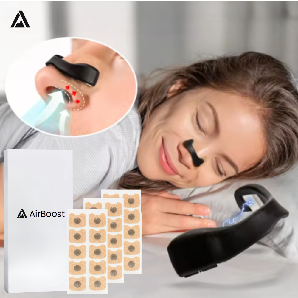 Verbessere deine Atmung mit AirBoost! Erhalte sofort mehr Luft, egal ob beim Sport oder beim Schlafen – Durch die Magnettechnologie werden deine Nasenflügel sanft angehoben, um die Luftzufuhr stark zu erhöhen.